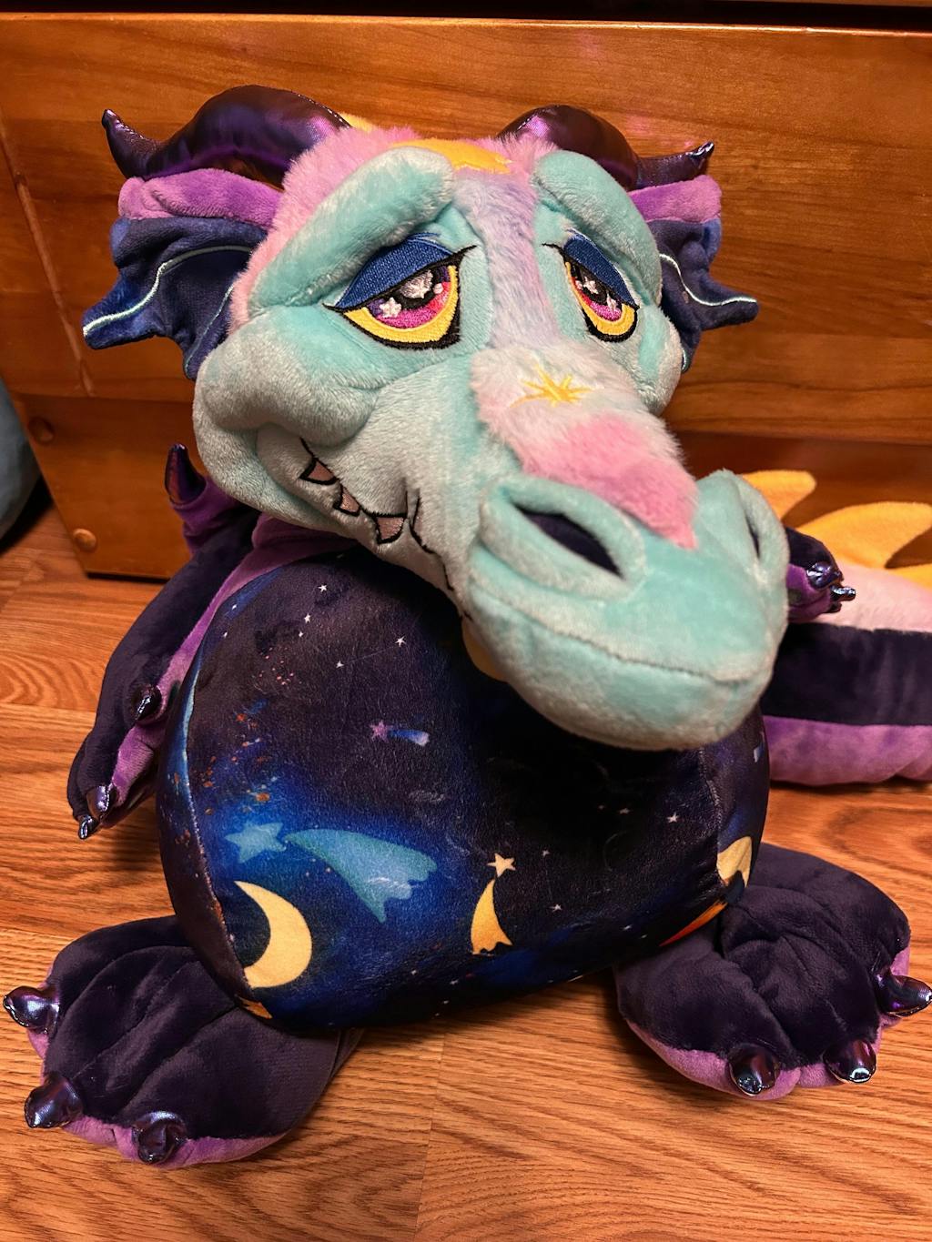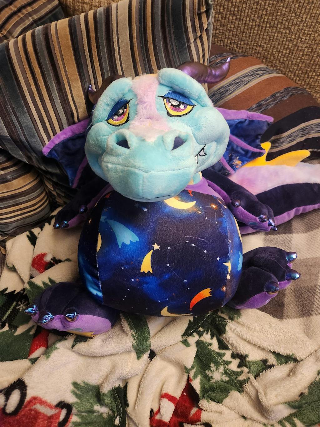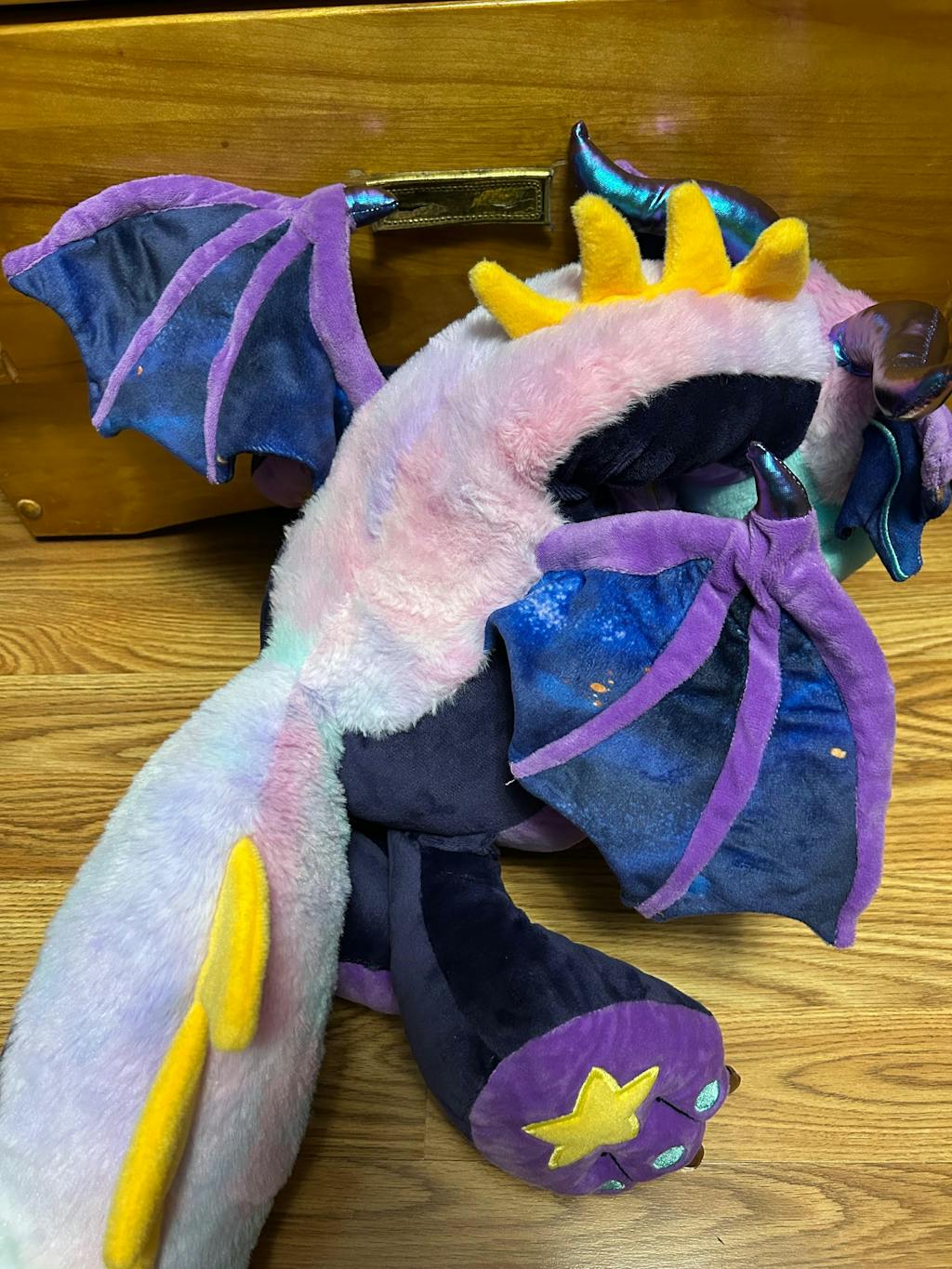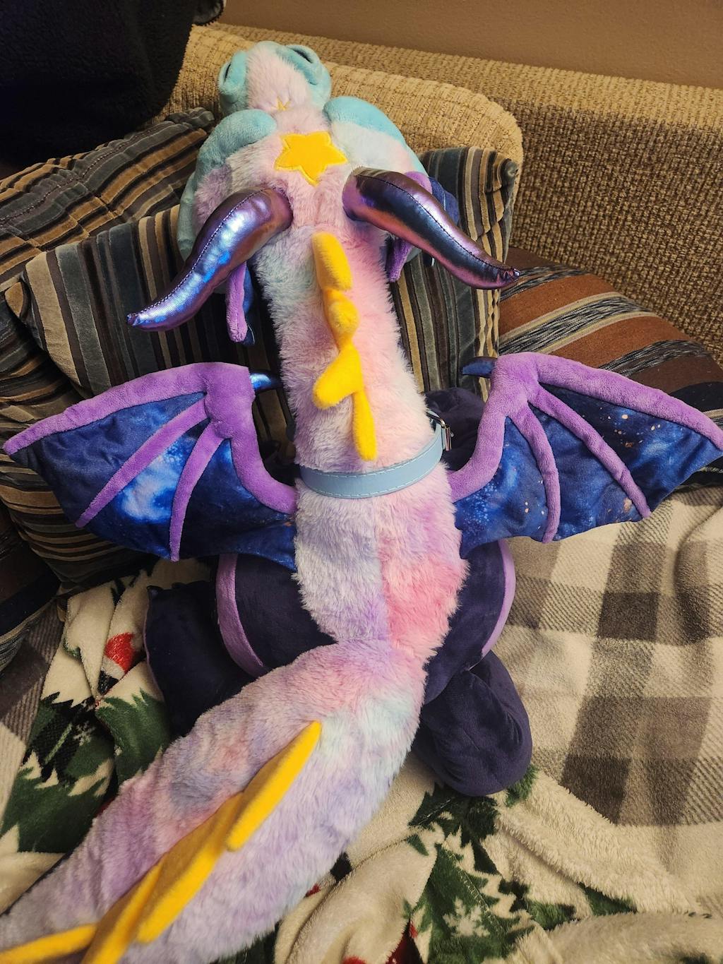 Star Dreamer Style 20” companion Dragon Please keep in mind these dragons are still in prototyping and size is an estimate! These are SMALLER than the GIANT laying down 6FT dragons. But also have a floppy posable weighted neck and head that doubles as a chin rest.